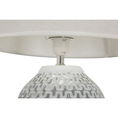 | Descrizione | Lampada da tavolo in resina con eleganti decorazioni geometriche in rilievo. Completa di paralume in tessuto bianco. |