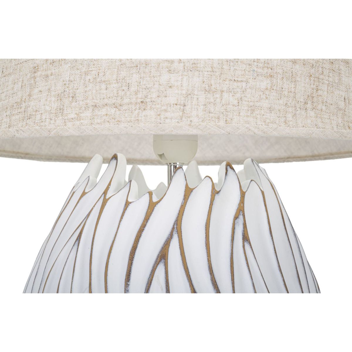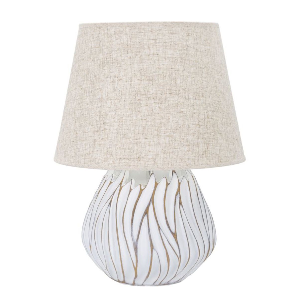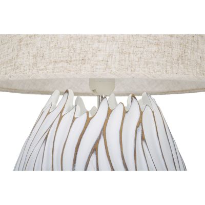 | Descrizione | Lampada da tavolo in resina con eleganti decorazioni lineari in rilievo. Completa di paralume in tessuto beige. |