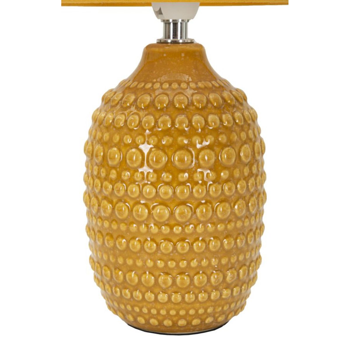 | Descrizione | Lampada da comodino con base ocra e decorazioni in rilievo, ideale per un tocco di eleganza e stile moderno in camera da letto.Completa di paralume in tessuto ocra. |