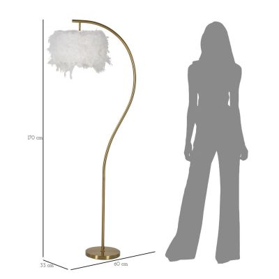| Descrizione | Lampada da tavolo in metallo dorato dal design arcuato e lineare completa di elegante paralume composto da piume sintetiche. |
