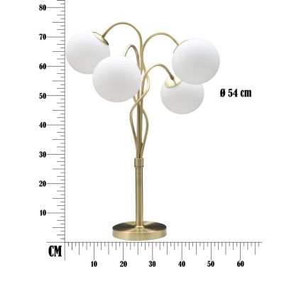 | Descrizione | Lampada da tavolo 4 punti luce in metallo dorato con sfere in vetro opaco. Un grazioso intreccio ne caratterizza la forma. Lampade da terra, da tavolo e lampadari. Con le sue sfere e le sue finiture in oro la linea Glamy dona una luce soffusa e sicuramente glam alle tue stanze. |
