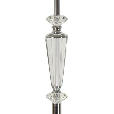 | Descrizione | Elegante lampada da terra in metallo argentato e vetro. Completa di paralume in tessuto grigio con finiture grigio scuro. |