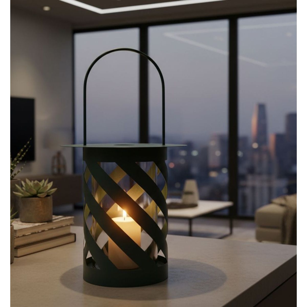 | Descrizione | Lanterna dal design intrecciato in finitura ottanio opaco. Moderna e raffinata, diffonde una luce avvolgente grazie ai tagli diagonali che avvolgono la struttura. |