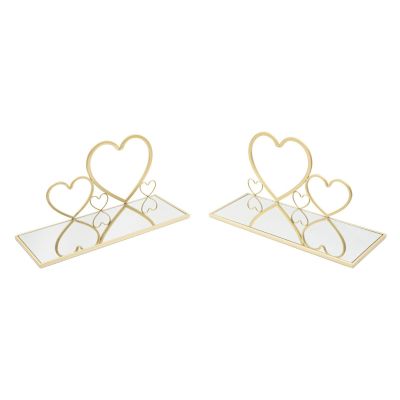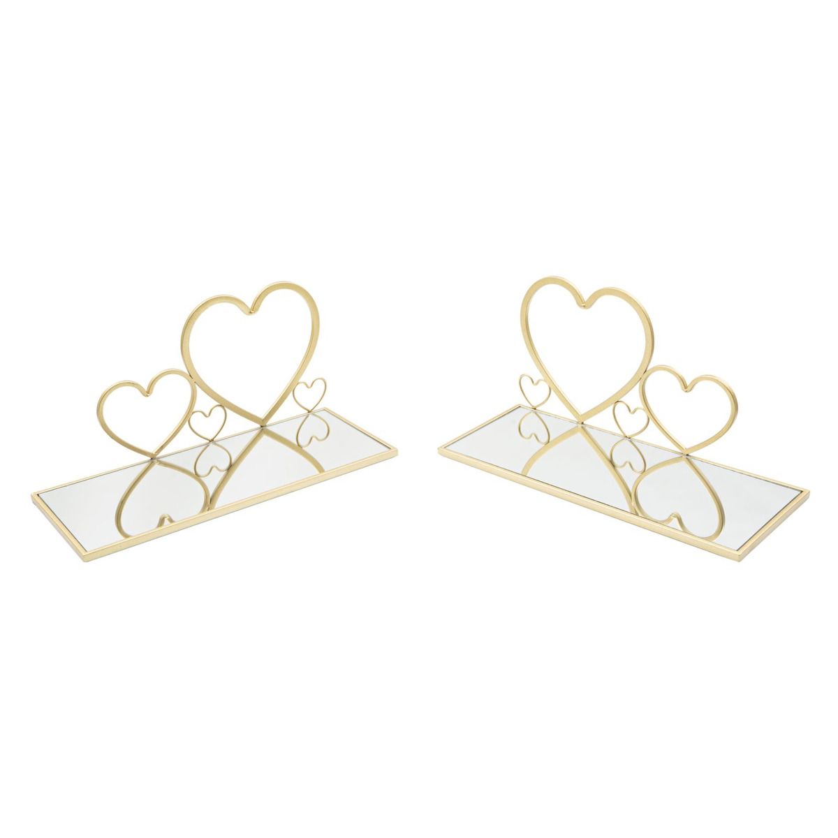 | Descrizione | Elegante coppia di mensole da parete in metallo dorato con ripiano in vetro a specchio decorate con 2 cuoricini. Il metallo color oro dona un tocco di classe e linee geometriche e arrotondate si sposano perfettamente con ogni tipo di arredo. |