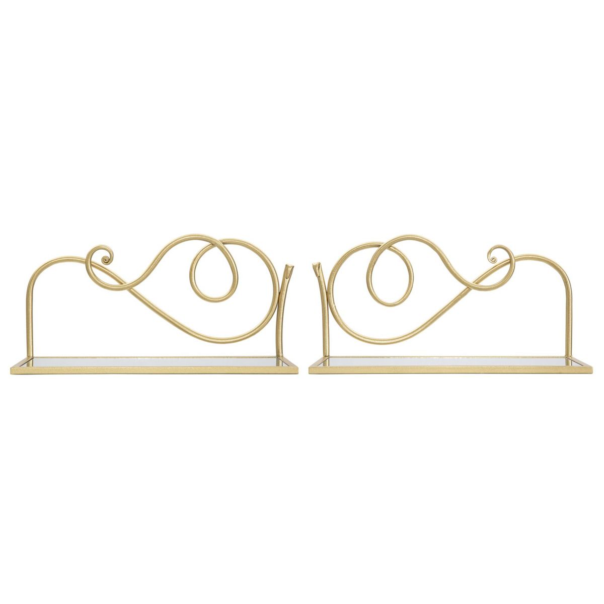 | Descrizione | Elegante coppia di mensole da parete in metallo dorato con ripiano in vetro a specchio dalle linee morbide e sinuose. Il metallo color oro dona un tocco di classe ad ogni ad ogni ambiente glam. Le linee geometriche e arrotondate si sposano perfettamente con ogni tipo di arredo. |
