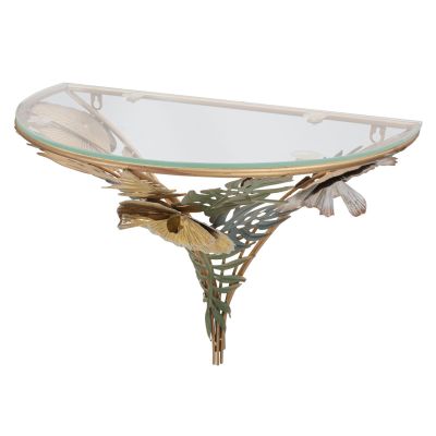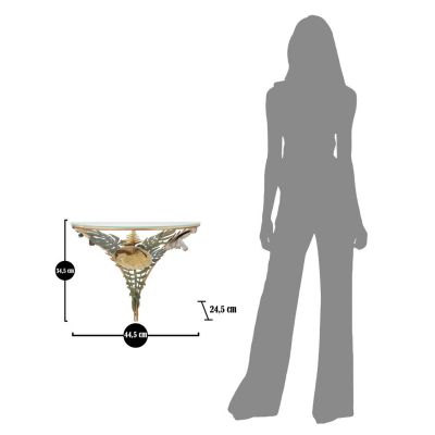 | Descrizione | Comodino semicircolare da parete in metallo dorato con piano in vetro. La base è riccamente decorata da foglie e fiori in vari colori. Il particolare design dona un tocco di classe e relax ad ogni ambiente. |