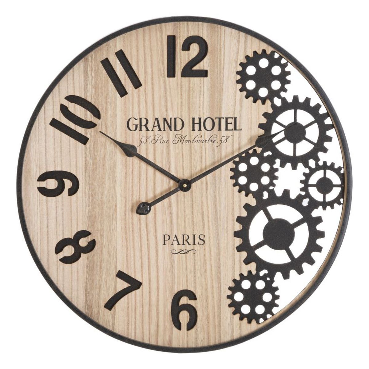 | Descrizione | Orologio rotondo da parete con ingranaggi che richiamano i meccanismi interni degli apparecchi meccanici. |