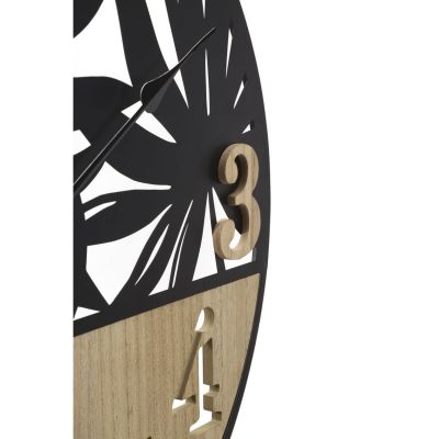 | Descrizione | Orologio rotondo da parete in metallo e legno dal design ispirato alle foglie delle piante tropicali. Funzionamento con batteria AA non inclusa. |