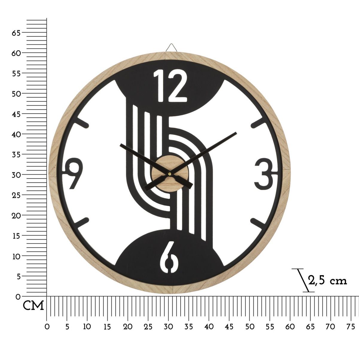 | Descrizione | Orologio rotondo da parete in metallo e legno composto da linee arrotondate e regolari. Funzionamento con batteria AA non inclusa. |