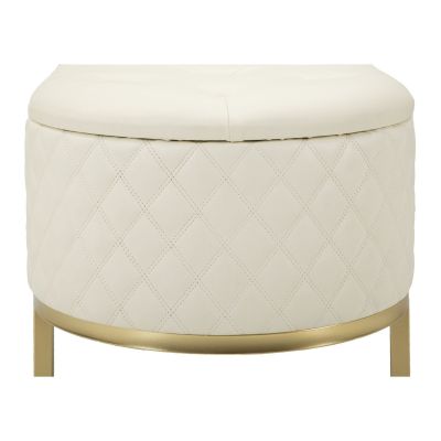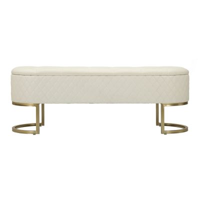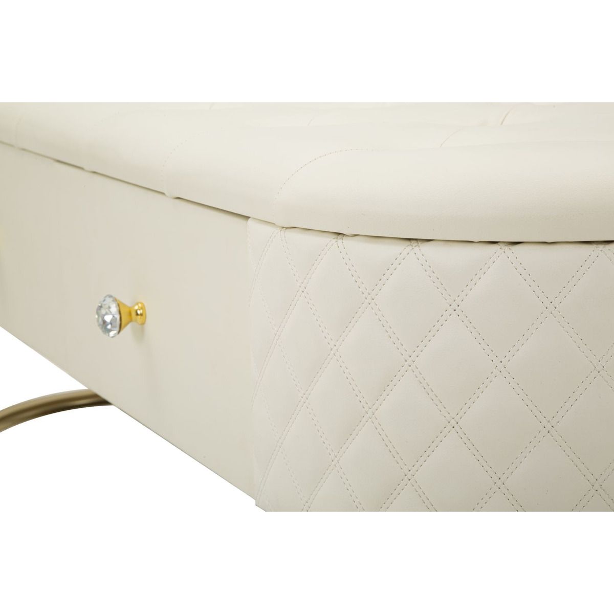 | Descrizione | Panca elegante e funzionale con cassetti, rivestita in simil pelle trapuntata, con gambe circolari in metallo dorato che abbracciano la sua forma distintiva. |
