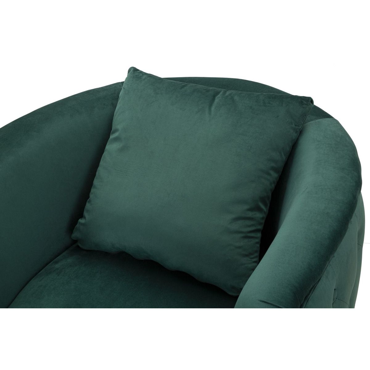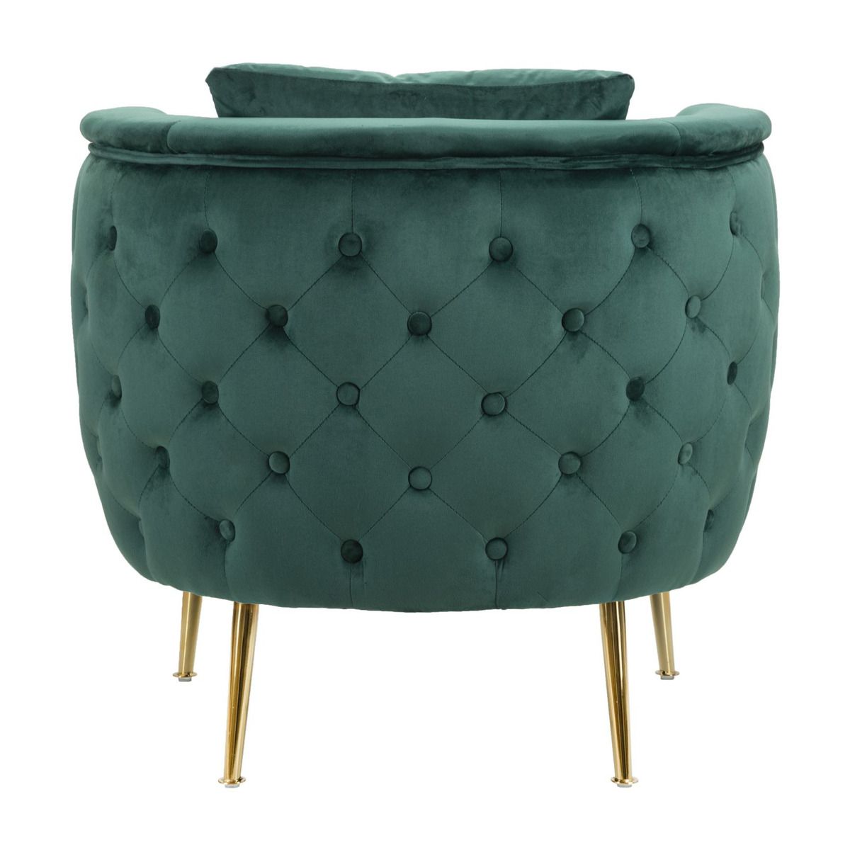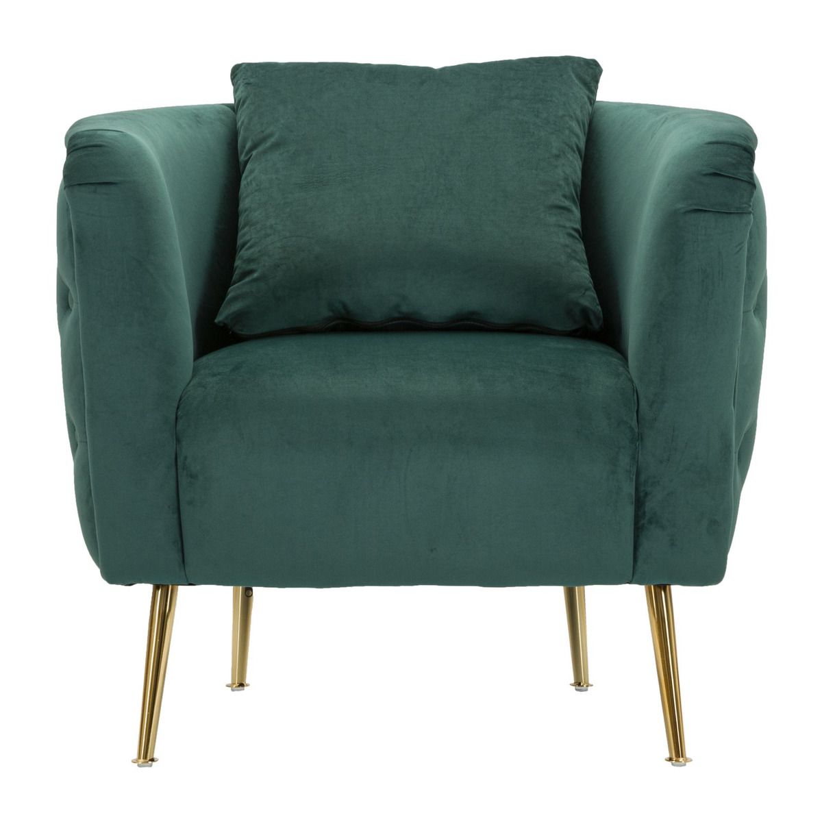 | Descrizione | Poltrona in tessuto imbottito verde con comodi braccioli. Il colore del tessuto insieme all'eleganza delle gambe dorate donano un tocco di classe ad ogni ambiente. Completo di cuscino. |