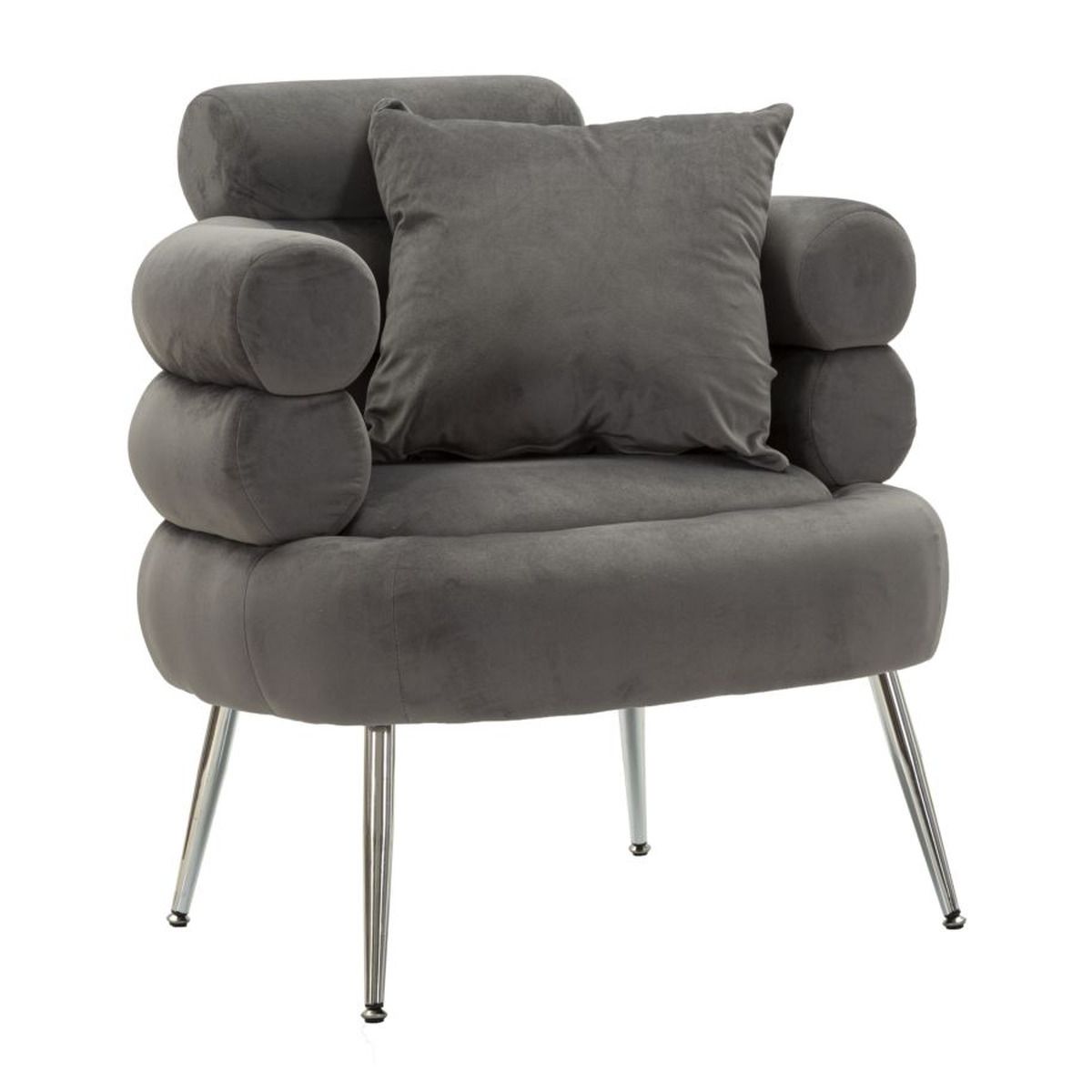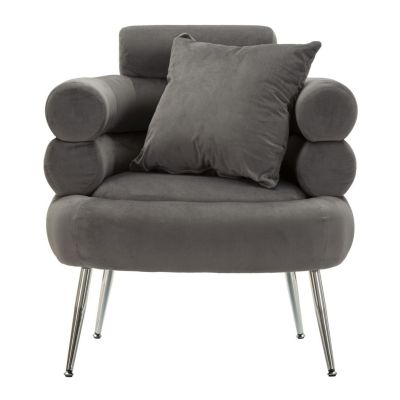| Descrizione | Poltrona grigia con poggiatesta e gambe argentate da assemblare, rivestita in morbido velluto. Ideale per ambienti moderni e raffinati, aggiunge un tocco di lusso e comfort. |