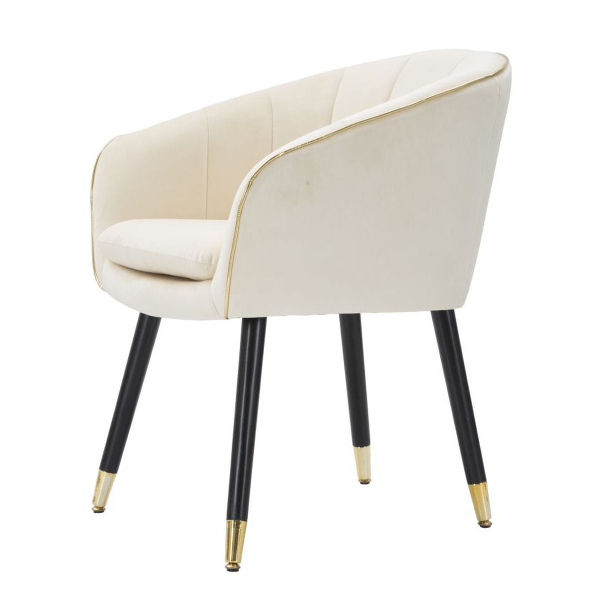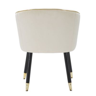 | Descrizione | Poltrona in tessuto color crema imbottito con rifiniture dorate e gambe in legno nero con dettagli in oro. L'eleganza del tessuto e dell'oro unite per offrire un comodo relax. |