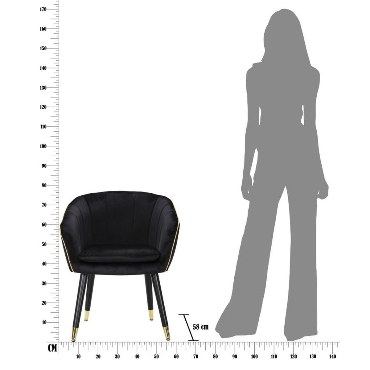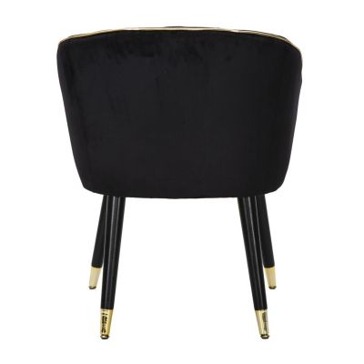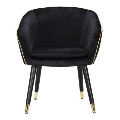 | Descrizione | Poltrona in tessuto nero imbottito con rifiniture dorate e gambe in legno nero con dettagli in oro. L'eleganza del nero e dell'oro unite per offrire un comodo relax. |