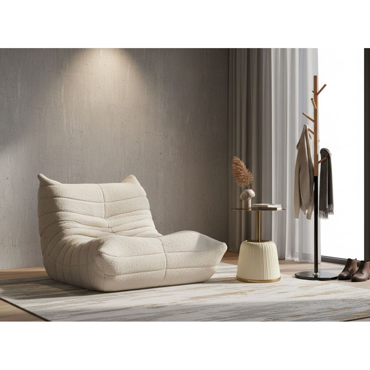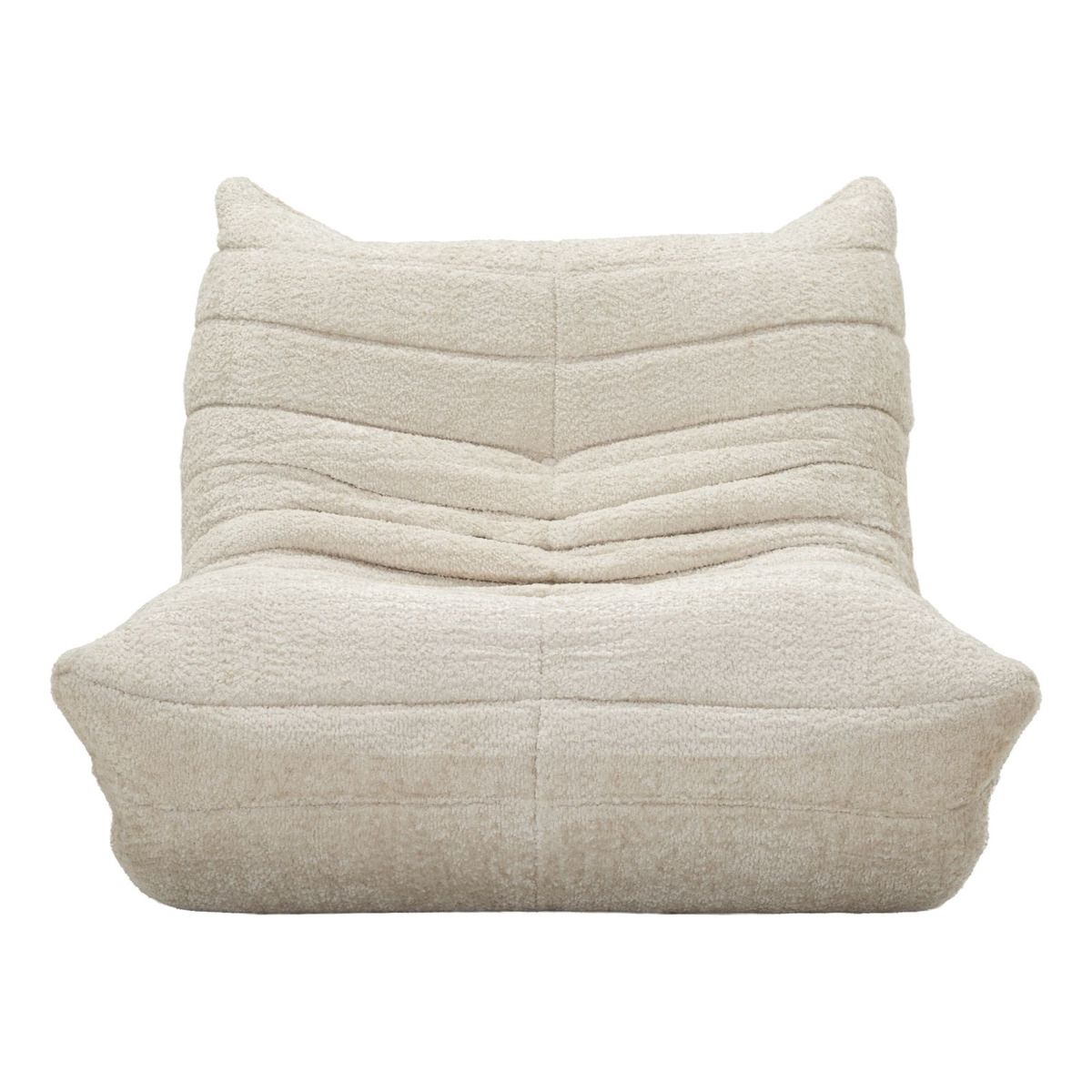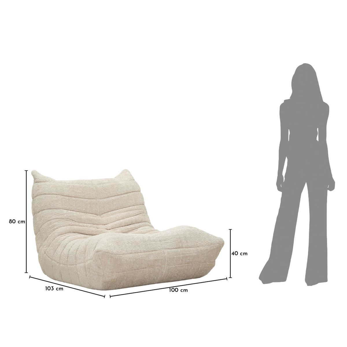 | Descrizione | Un design fluido e organico che invita al relax. Questa poltrona trasmette una sensazione di leggerezza e morbidezza grazie al rivestimento bouclé e alle proporzioni generose, perfetta per spazi luminosi e contemporanei. |