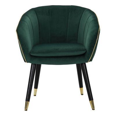 | Descrizione | Poltrona in tessuto verde imbottito con rifiniture dorate e gambe in legno nero con dettagli in oro. L'eleganza del tessuto e dell'oro unite per offrire un comodo relax. |