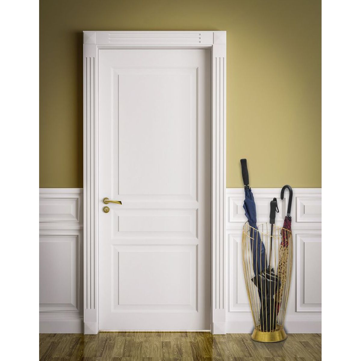 | Descrizione | Portaombrelli in metallo dorato dalle linee regolari e geometriche. Lo stile glam rende ogni complemento d'arredo particolare e dona eleganza e luminosità ad ogni stanza. |