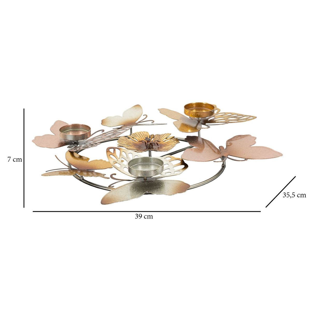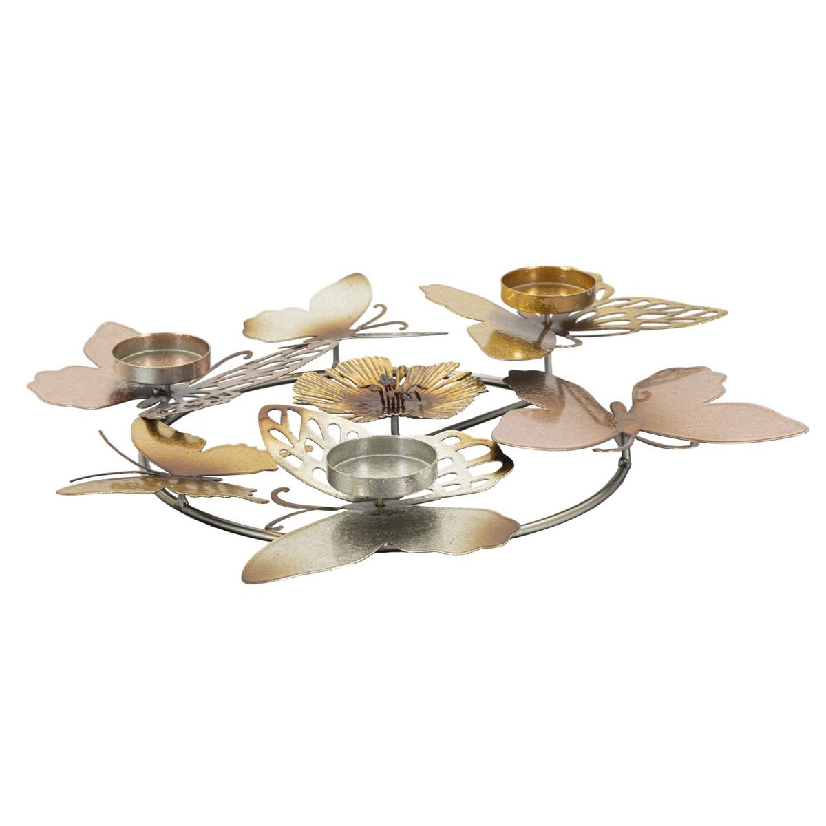 | Descrizione | Portacandele rotondo composto da fiori e farfalle multicolori. Può contenere 3 candele. |