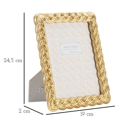 | Descrizione | Cornice rettangolare da appoggio in resina dal design formato da un nastro intrecciato. Può essere posizionata sia in orizzontale che in verticale. Dimensioni foto cm 15x20. |