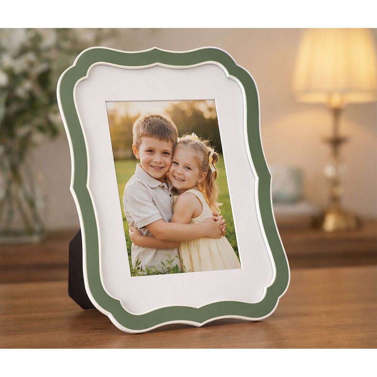 | Descrizione | Compatta e armoniosa, con bordo verde deciso. Una cornice che dona equilibrio e originalità agli spazi. |