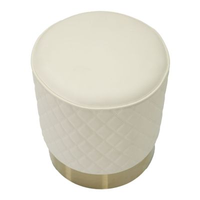 | Descrizione | Pouff rotondo bianco trapuntato in simil pelle con base oro aggiunge un tocco di luminosità a qualsiasi spazio. |