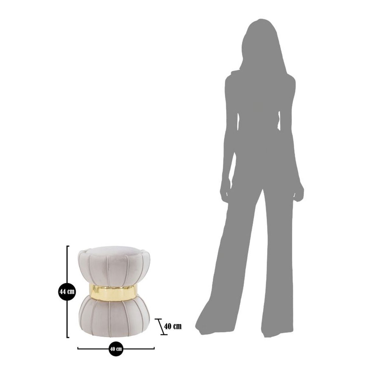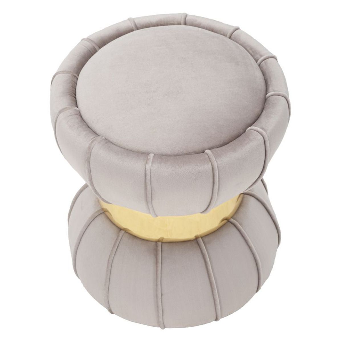 | Descrizione | Sgabello rotondo imbottito in velluto sintetico con un elegante fascia deccorativa dorata centrale. La forma ricorda una clessidra. |
