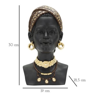 | Descrizione | Statua a forma di testa di donna con copricapo e gioielli ispirati alla tradizione delle tribù primitive. |