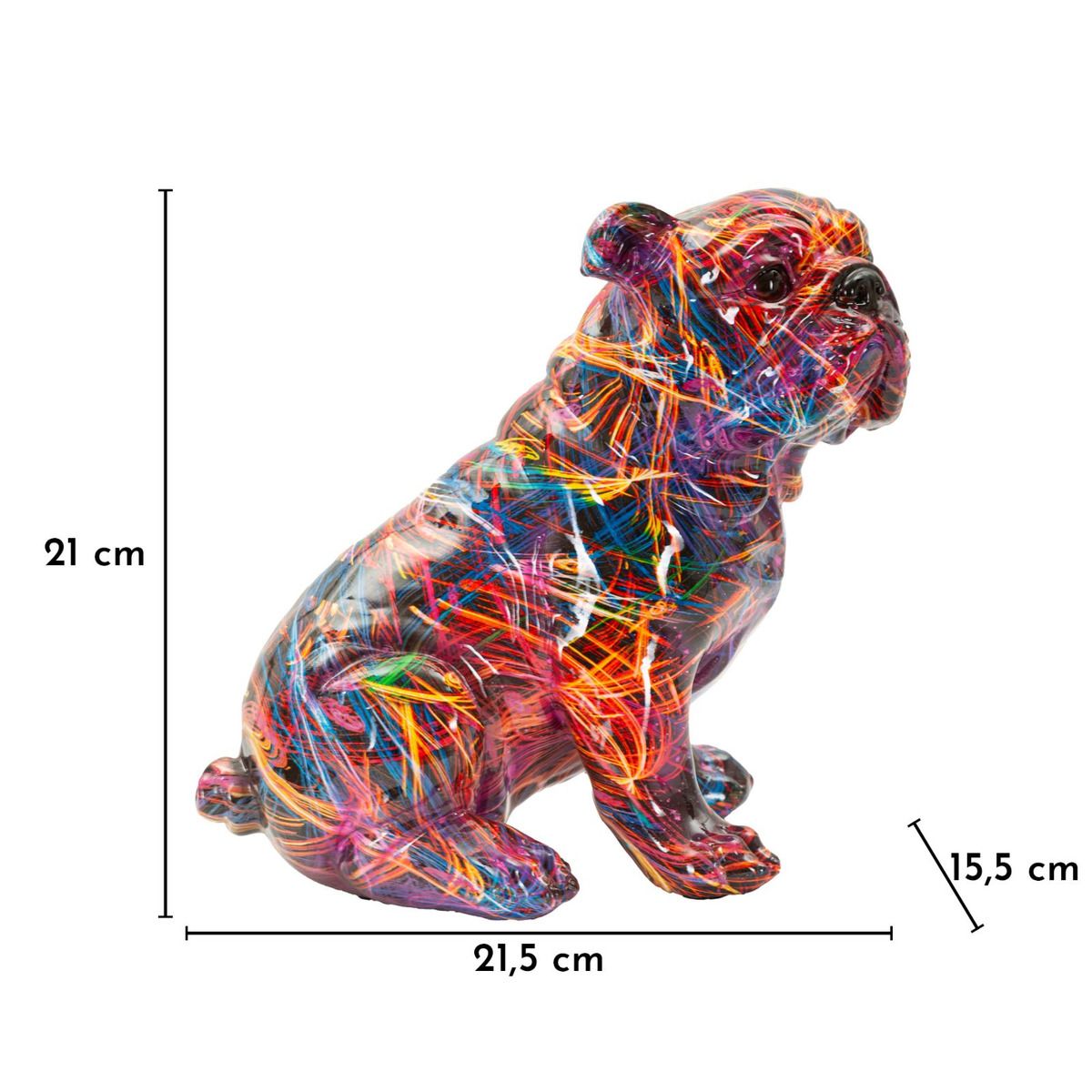 | Descrizione | Un bulldog dal carattere deciso reinterpretato in chiave pop, con trame colorate e luminose. Un decoro che unisce forza e ironia, perfetto per chi ama osare con lo stile. |