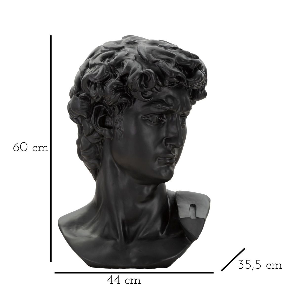 | Descrizione | Elegante statua nera di testa di uomo che richiama l'arte classica impreziosità da finiture dorate. |