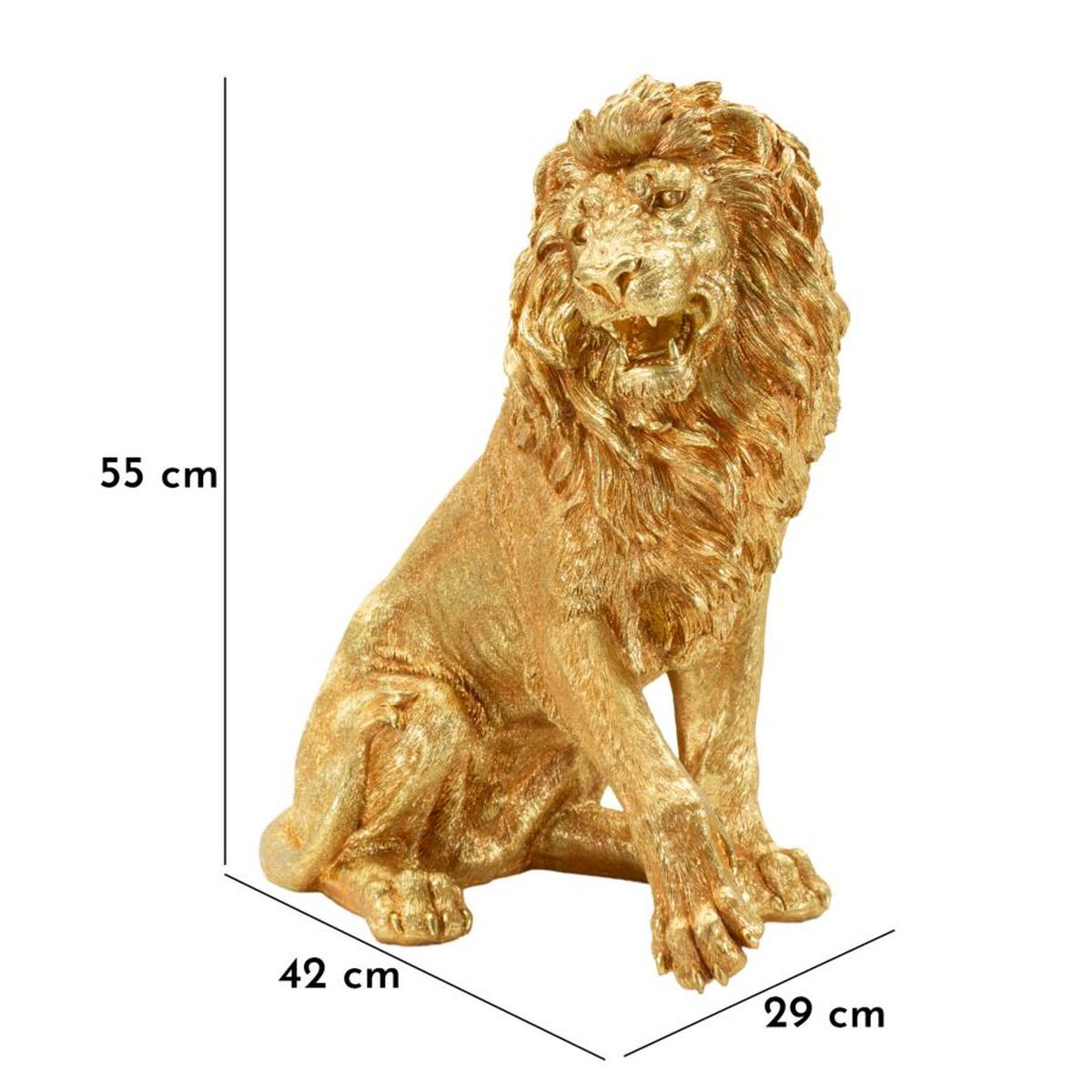 | Descrizione | Fiero e attento, il Leone Shant seduto trasmette forza e maestosità anche nella quiete. Le sue linee eleganti e la finitura dorata catturano lo sguardo, raccontando una storia di orgoglio, protezione e bellezza senza tempo. |