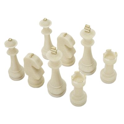 | Descrizione | Set di statuette di scacchi assortiti dai toni chiari con dettagli in oro, perfetti per aggiungere un tocco di classe ad ogni partita. |