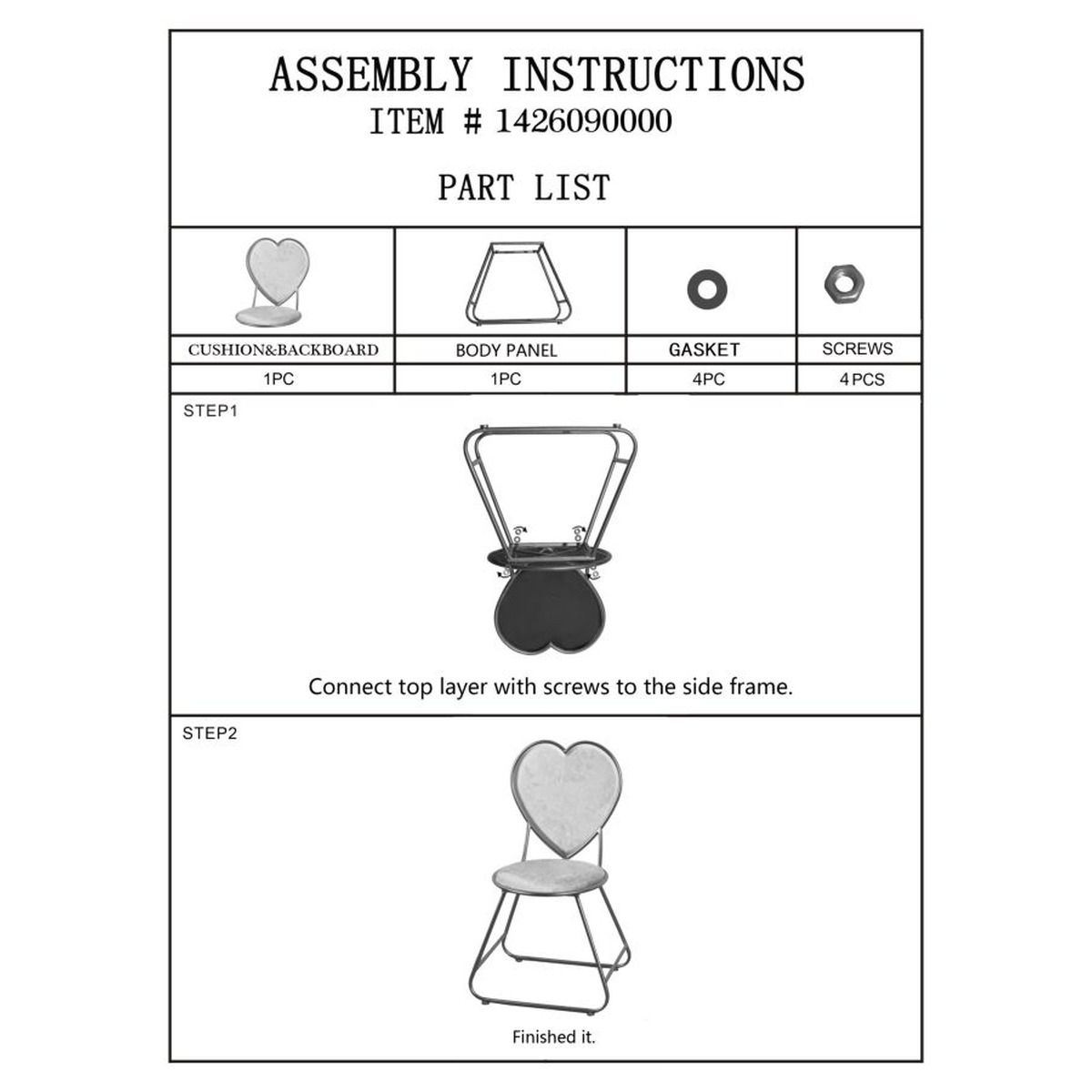 | Descrizione | Sedia in metallo dorato con seduta e schienale in tessuto imbottito. Lo schienale a forma di cuore rende particolare l'articolo donando un tocco di tenerezza ad ogni ambiente. |