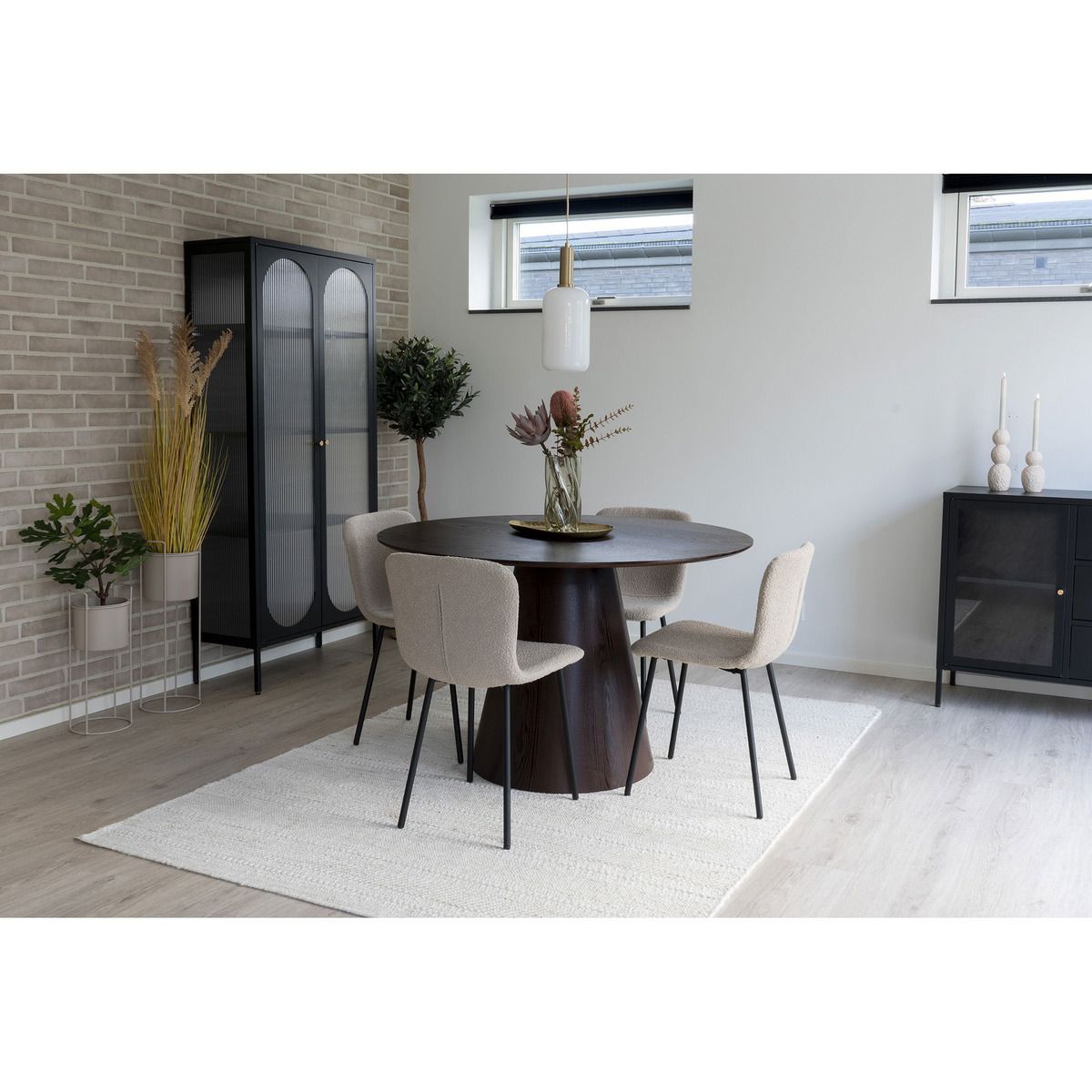 | Descrizione | Set di sedie in tessuto bouclé di colore beige e gambe nere in metallo. |