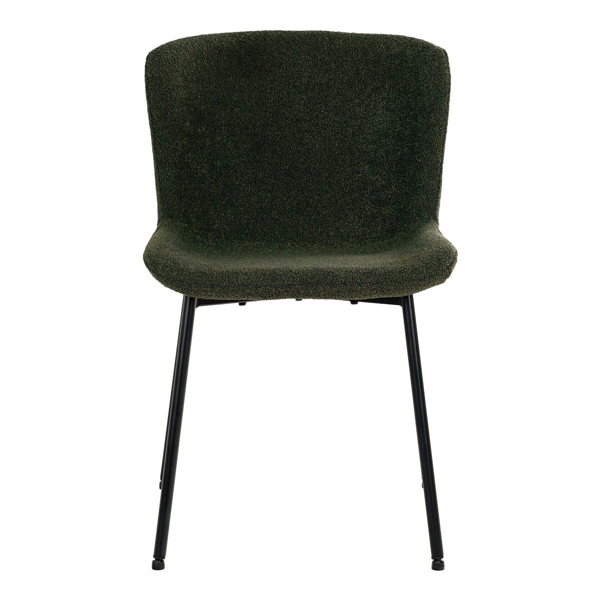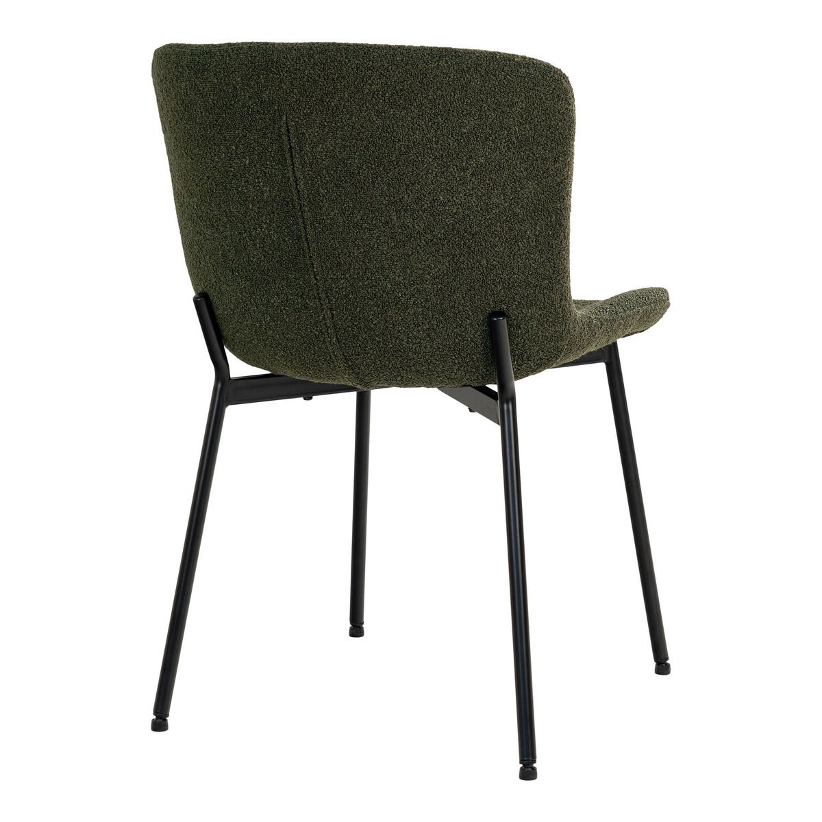 | Descrizione | Set di sedie in tessuto bouclé color verde e gambe nere in metallo. |