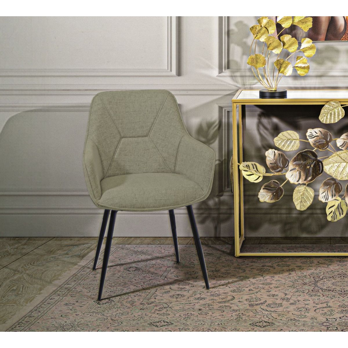 | Descrizione | Set di 2 sedie in tessuto imbottito complete di pratico bracciolo. Il tessuto insieme alle gambe in metallo nero donano un tocco di classe ad ogni ambiente. |