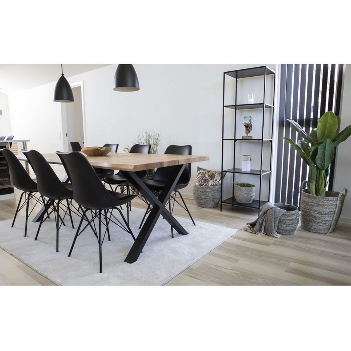 | Descrizione | Set di sedie in plastica e similpelle e gambe nere in metallo. |