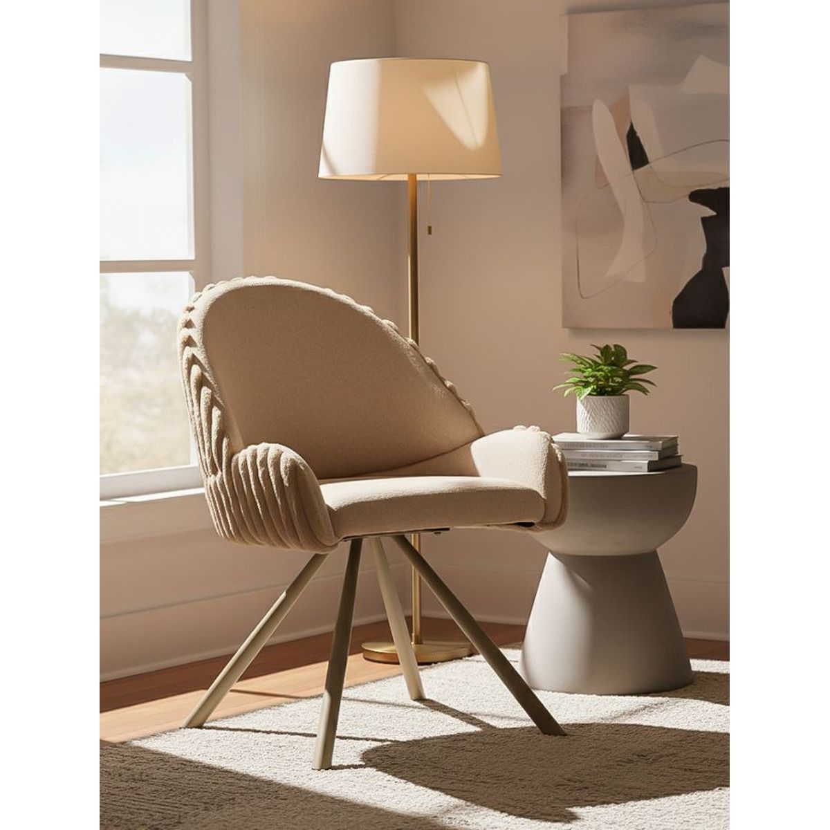 | Descrizione | Sedia dal design morbido e accogliente con dettagli lavorati e struttura moderna. Perfetta per ambienti eleganti e contemporanei. |