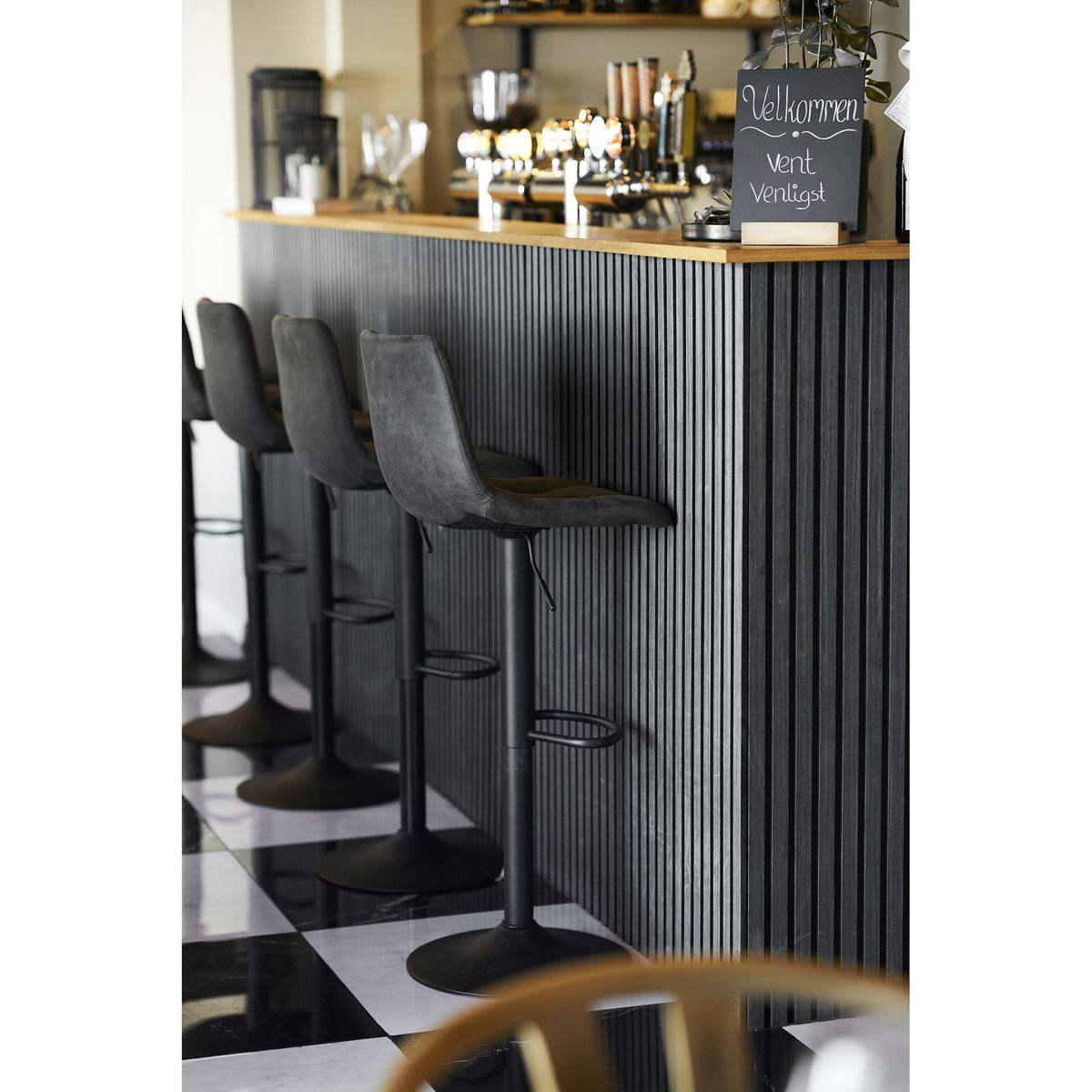 | Descrizione | Set di sgabelli da bar, gambe nere, microfibra, metallo, grigio |
