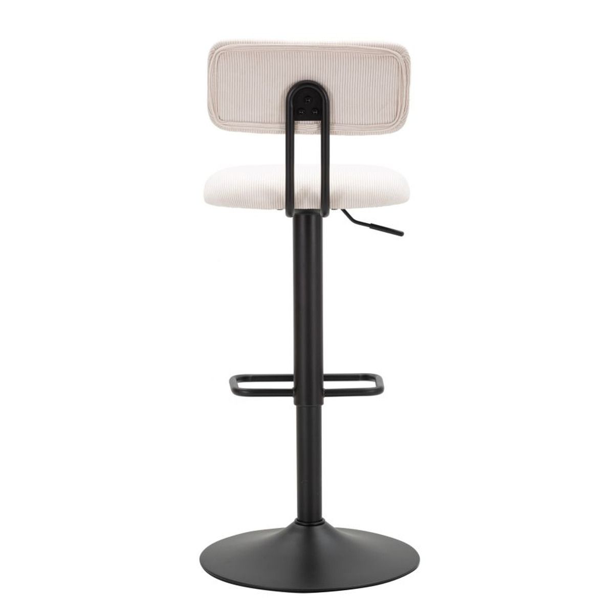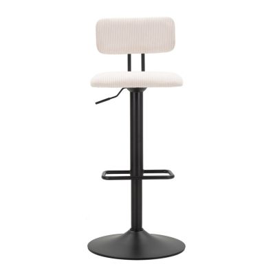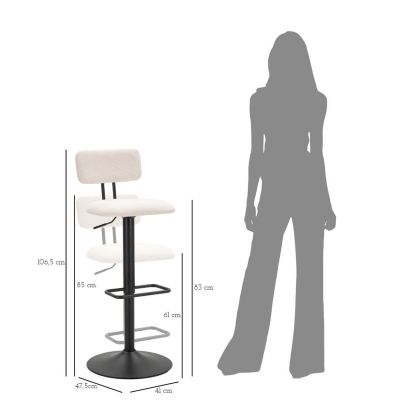 | Descrizione | Sgabello bar rotondo girevole in metallo e tessuto imbottito con schienale imbottito. Completo di regolatore d'altezza. Il design semplice richiama gli anni '70. |