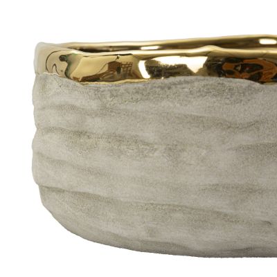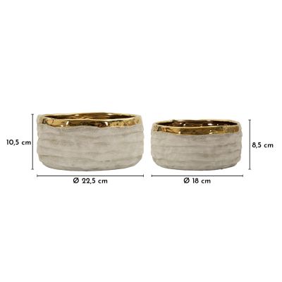 | Descrizione | Set di due vasi bassi con texture naturale e dettagli dorati. Versatili e raffinati, ideali per decorazioni moderne. |