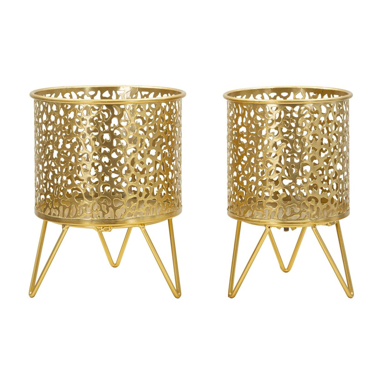 | Descrizione | Coppia di portavasi in metallo dorato elegantemente decorati con intagli irregolari e arrotondati. Completi di supporto in metallo dorato. I vasi sono removibili dai supporti. |