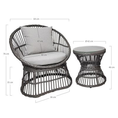 | Descrizione | Set da giardino, Con cuscini, Rattan, Metallo, Poliestere, Grigio |