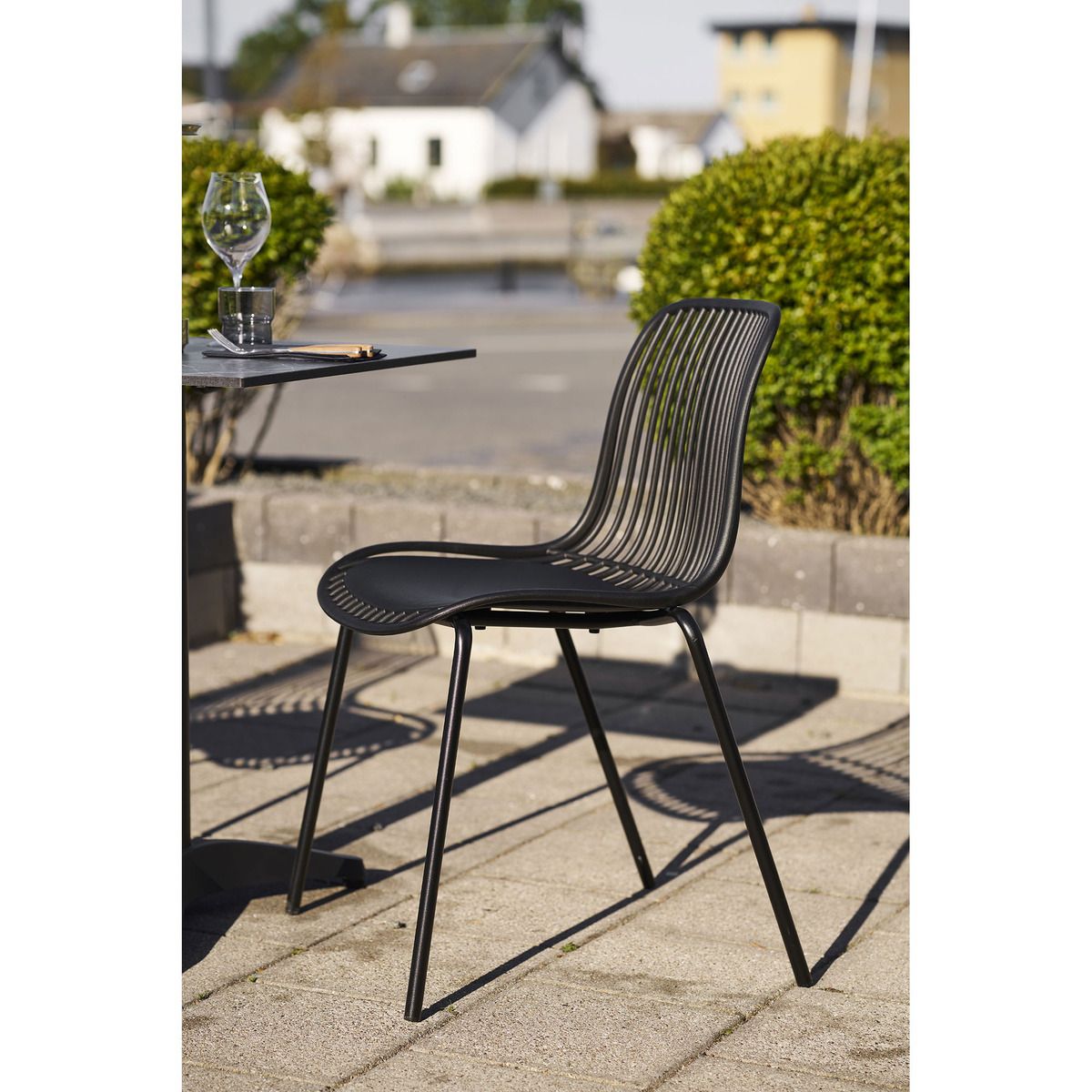 | Descrizione | Set 4 Sedie da Giardino Impilabili in Plastica color nero e gambe nere in metallo. Altezza Seduta 46,5 cm, Profondità Seduta 43 cm. |