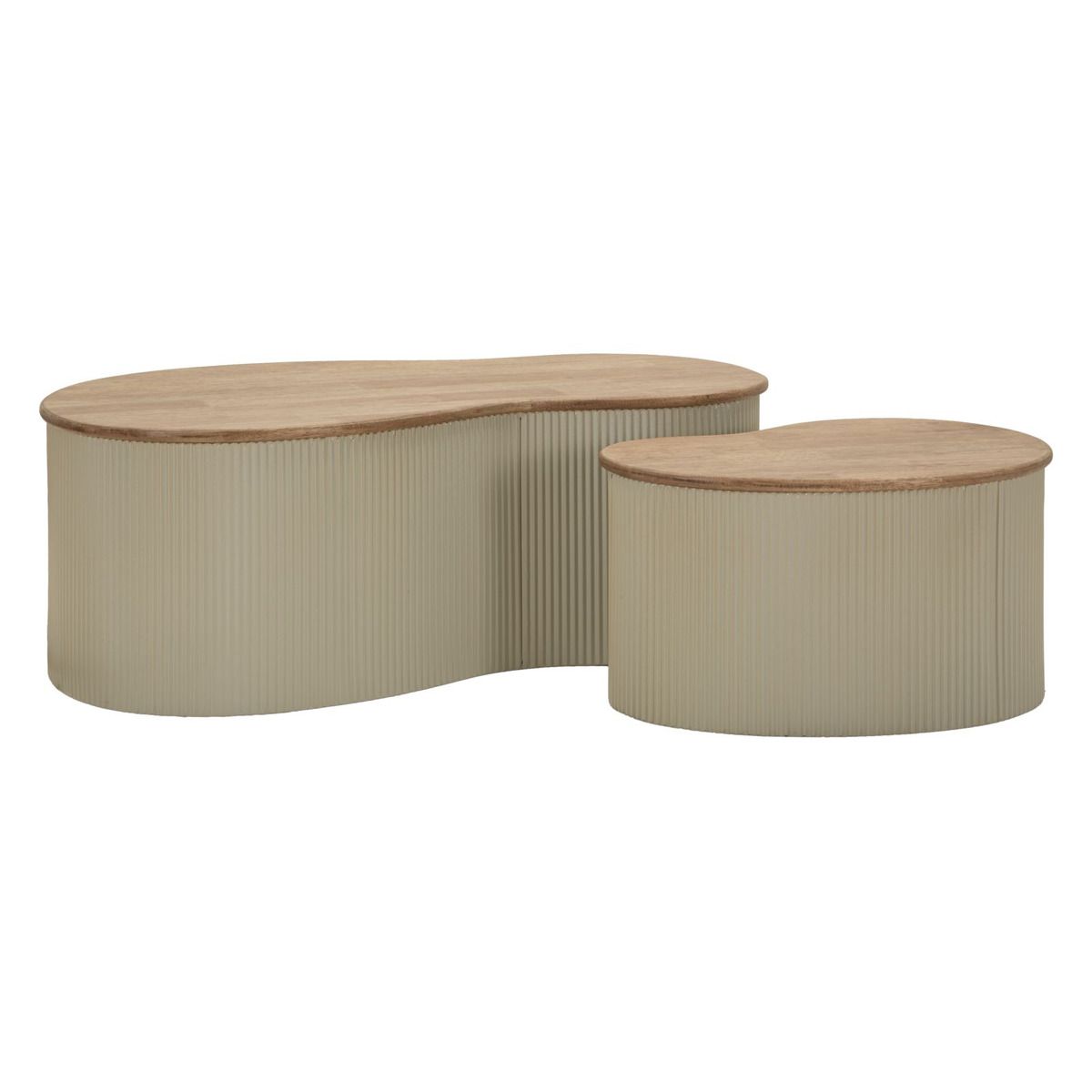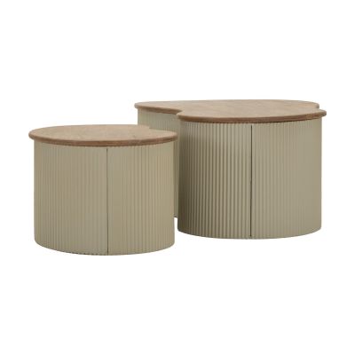 | Descrizione | Un duo armonioso di forme e materiali. Questi tavolini accostano la purezza del bianco caldo/beige alla calda texture del legno, creando un equilibrio elegante tra morbidezza e rigore geometrico. |