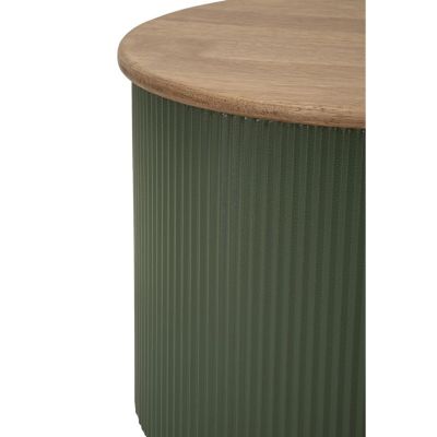 | Descrizione | Linee sinuose e tonalità naturali. Questa coppia di tavolini porta un tocco organico e raffinato, con superfici in legno che dialogano con la struttura a coste dal gusto contemporaneo. |