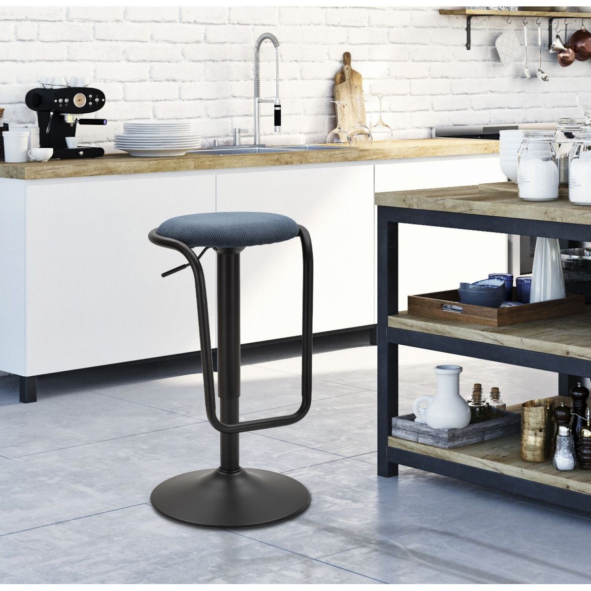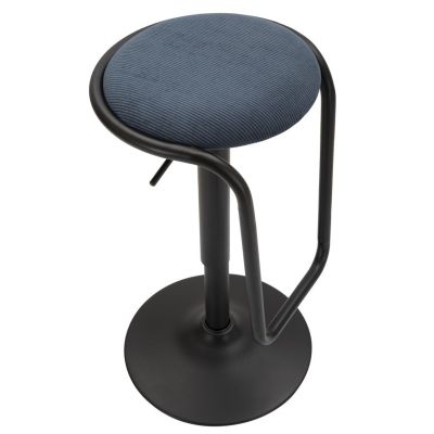 | Descrizione | Sgabello bar rotondo girevole in metallo e tessuto imbottito. Completo di regolatore d'altezza. Il design semplice richiama gli anni '70. |