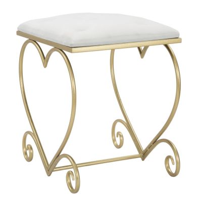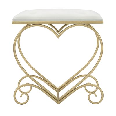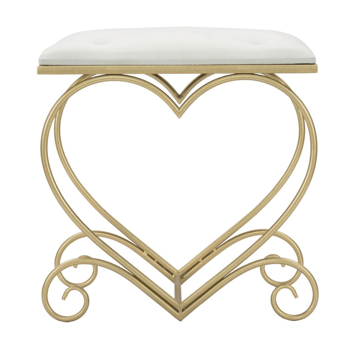 | Descrizione | Elegante sgabello in metallo dorato con tessuto imbottito crema dall'originale design a forma di cuore con riccioli. Il metallo dorato e il velluto si fondono in uno stile unico per rendere glam ogni stanza. |
