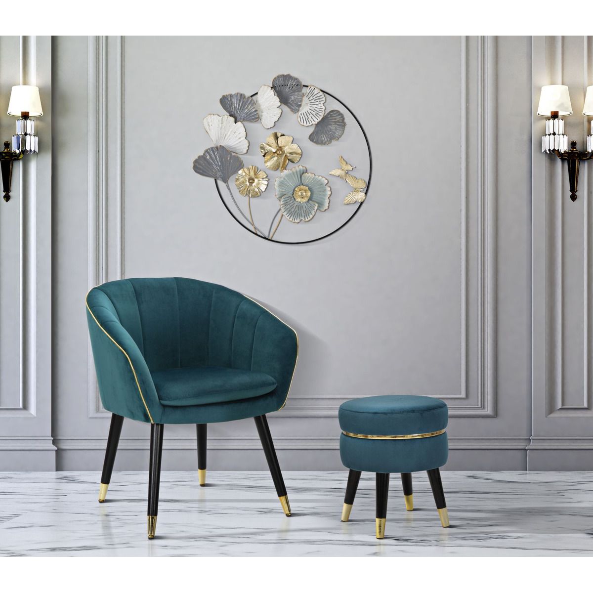 | Descrizione | Sgabello in legno e velluto color ottanio. Sedute dalla finitura dorata che si ispirano ai camerini delle grandi dive di Hollywood. Ideali da collocare in camera da letto o in salotto per sentirsi delle star. |