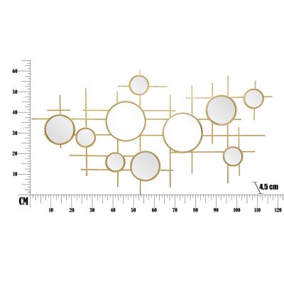 | Descrizione | Composizione muraria con specchi rotondi di varie dimensioni collegati da decorazioni lineari e geometriche. Il colore dorato dona luminosità ed eleganza ad ogni stanza. |