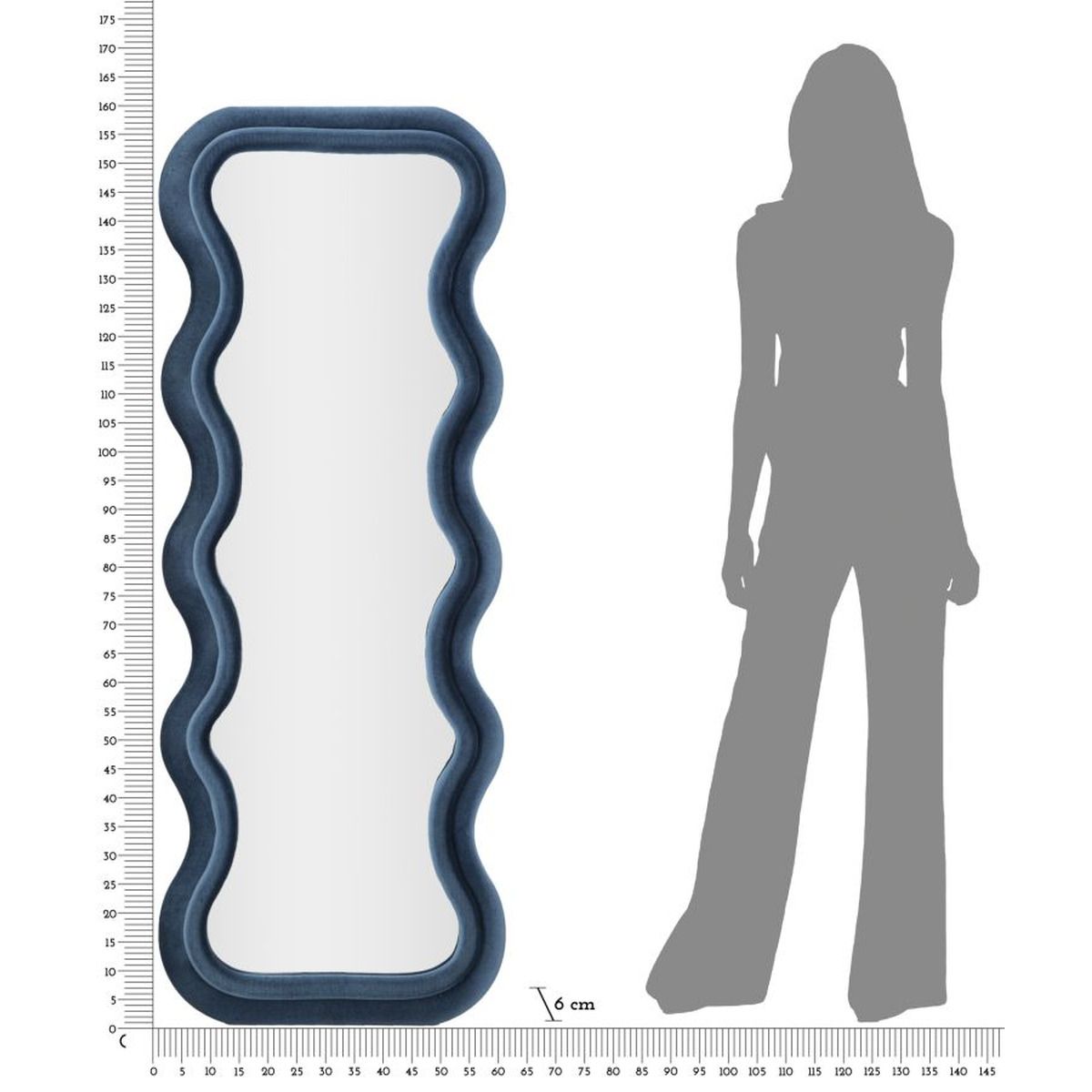 | Descrizione | Specchio da parete con cornice in legno rivestito in tessuto dalle linee ondulate. |